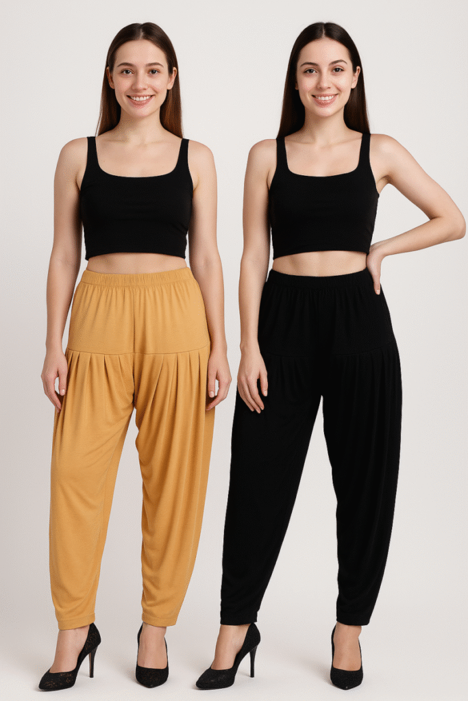 MAGILAM Viscose Solid Patiala Pants Combo 2 (White :: Yellow)