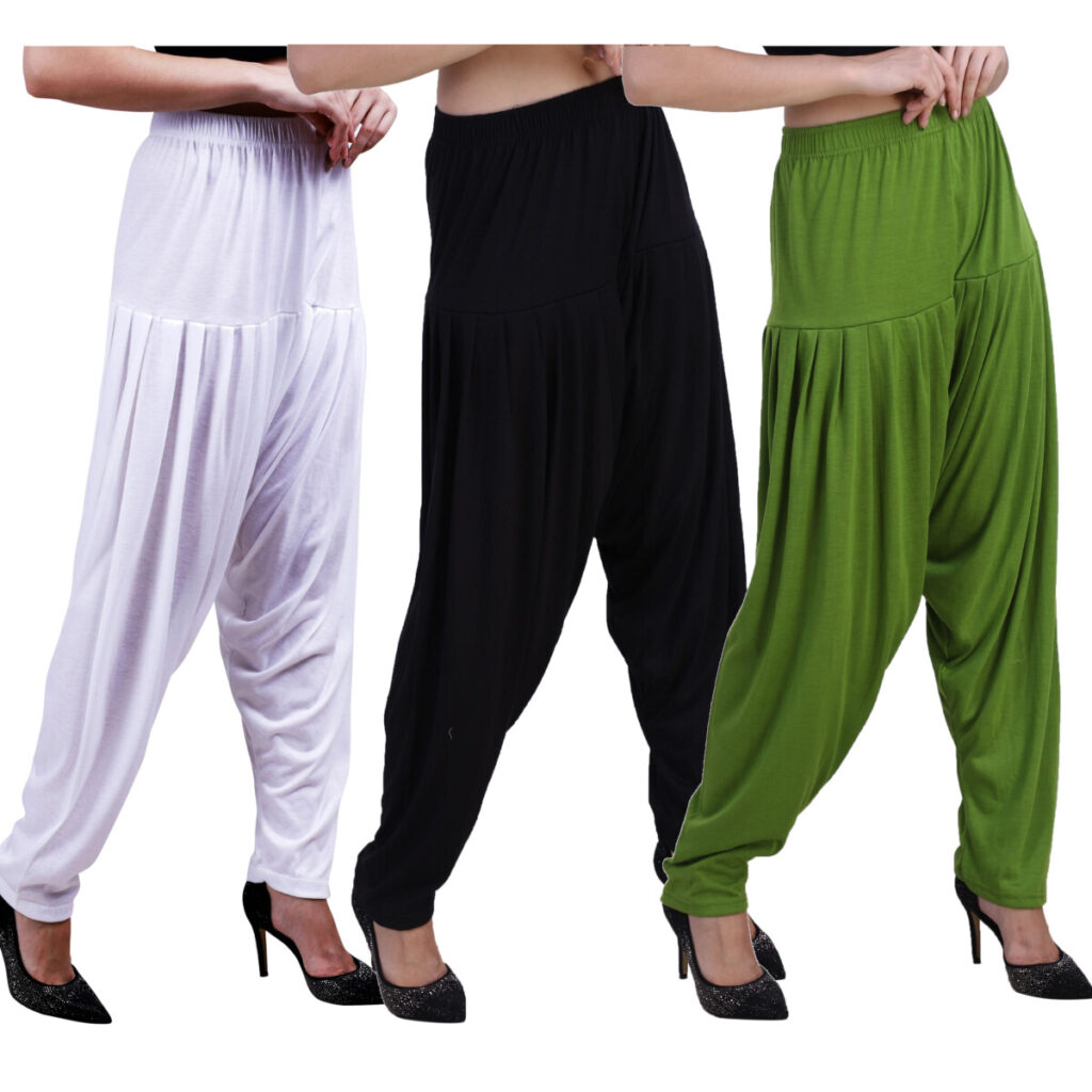 MAGILAM Viscose Solid Patiala Pants Combo 2 (White :: M.P.Green)