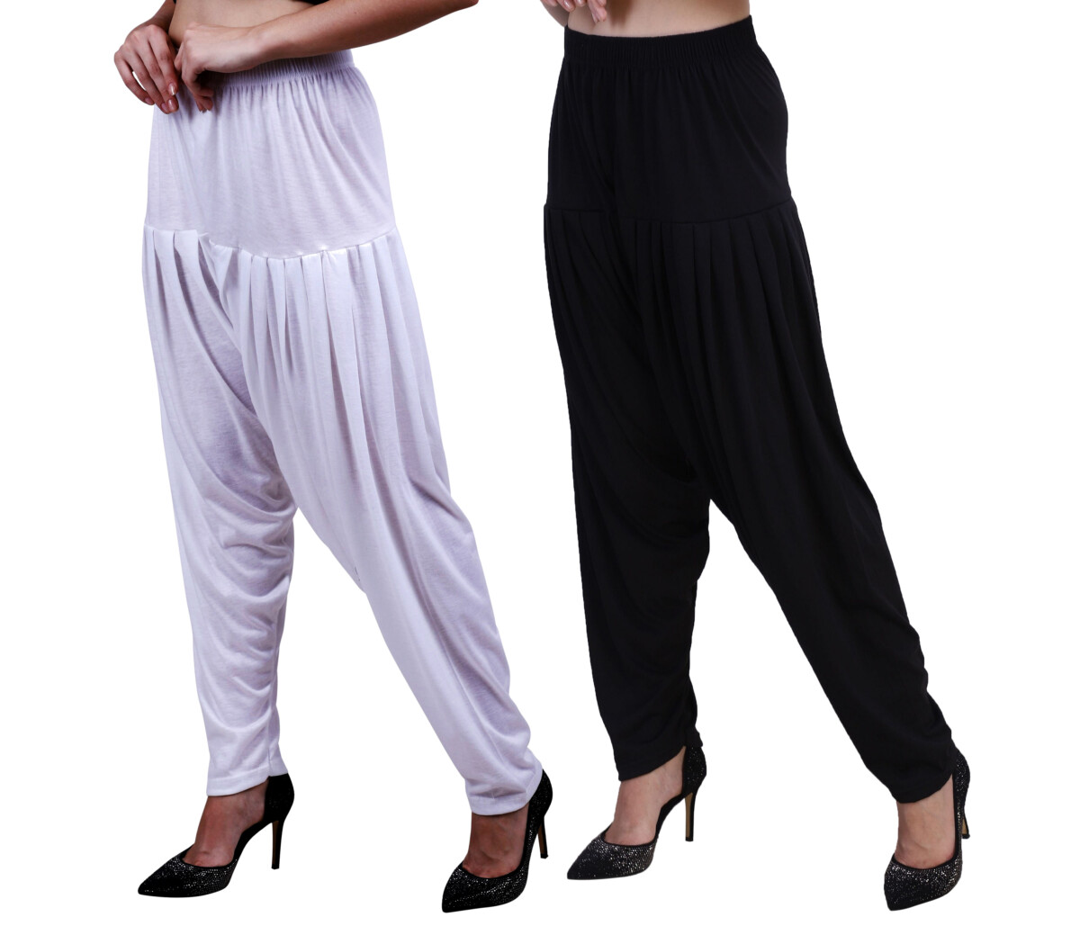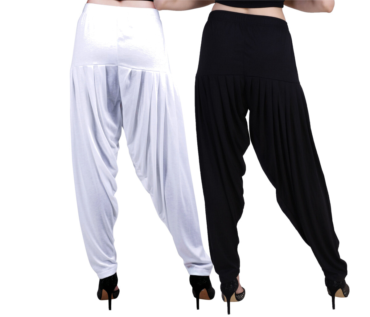 MAGILAM Viscose Solid Patiala Pants Combo 2 (White :: Black)