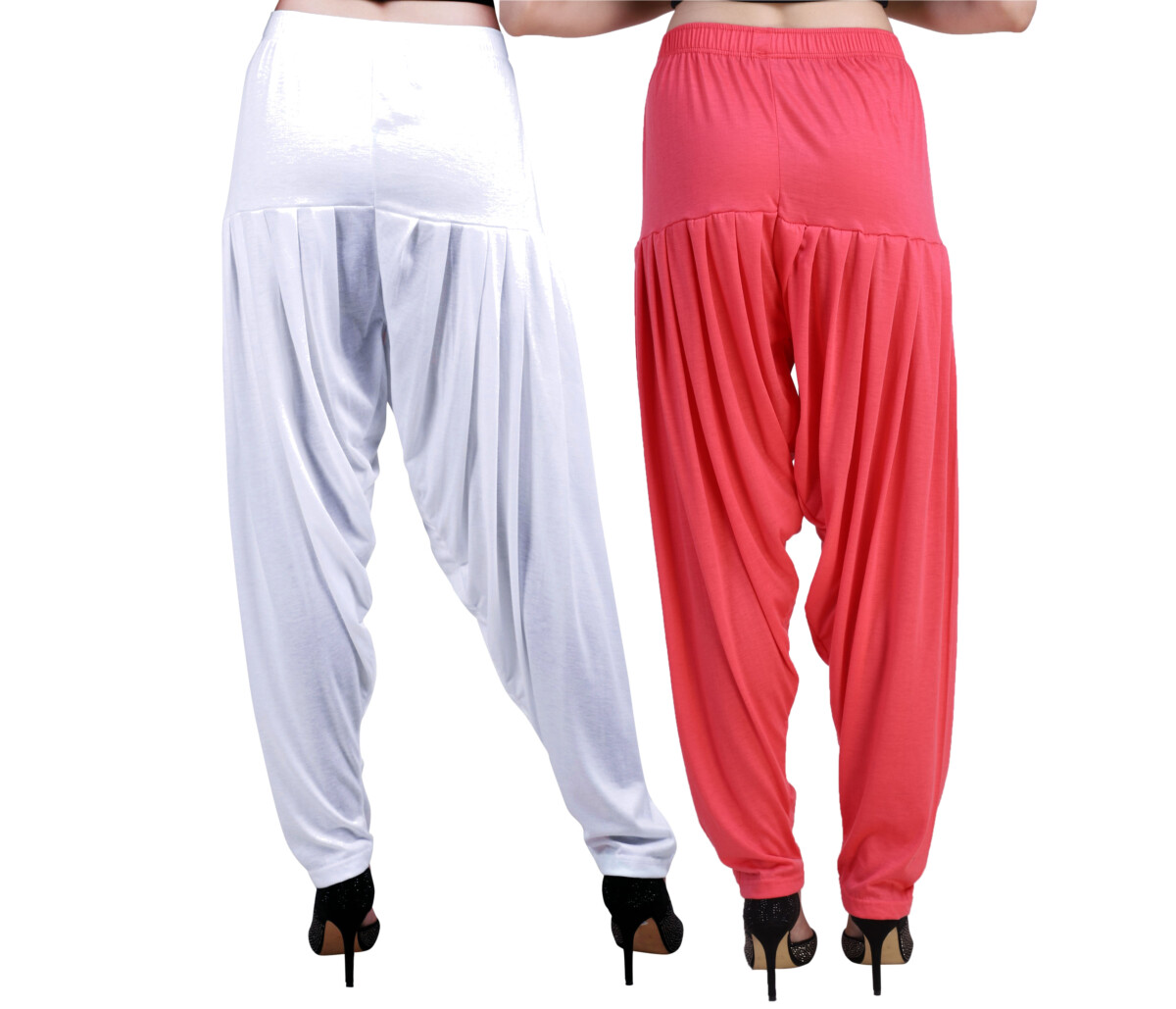 MAGILAM Viscose Solid Patiala Pants Combo 2 (White :: Deep Rani)