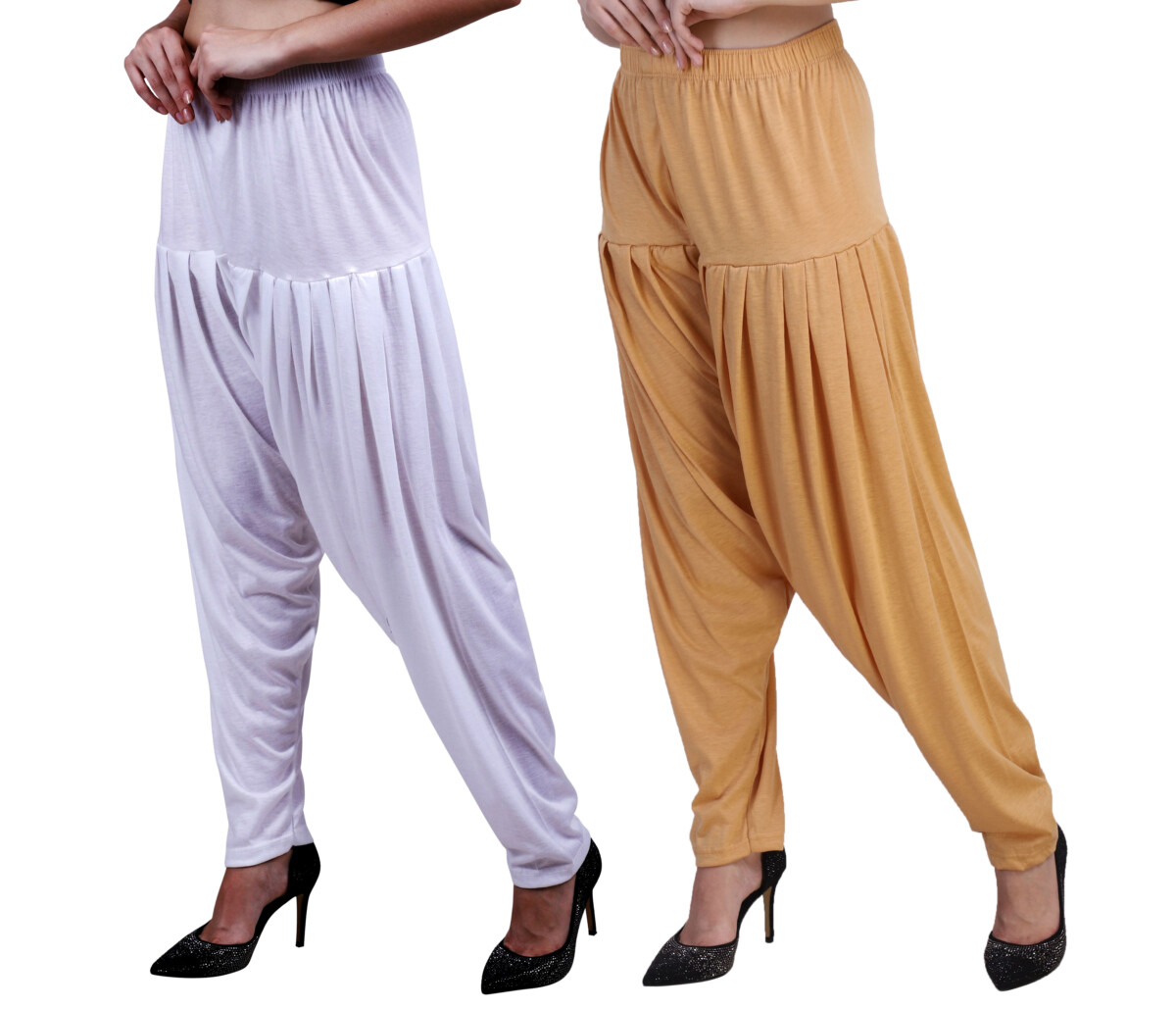 MAGILAM Viscose Solid Patiala Pants Combo 2 (White :: Dark skin)