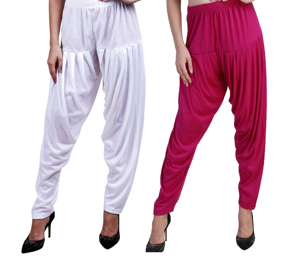 MAGILAM Viscose Solid Patiala Pants Combo 2 (White :: Deep Rani)
