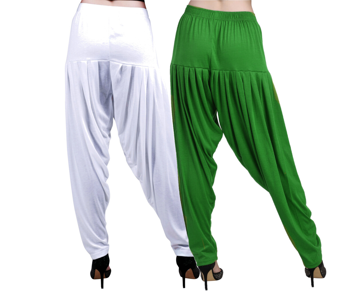 MAGILAM Viscose Solid Patiala Pants Combo 2 (White :: M.P.Green)