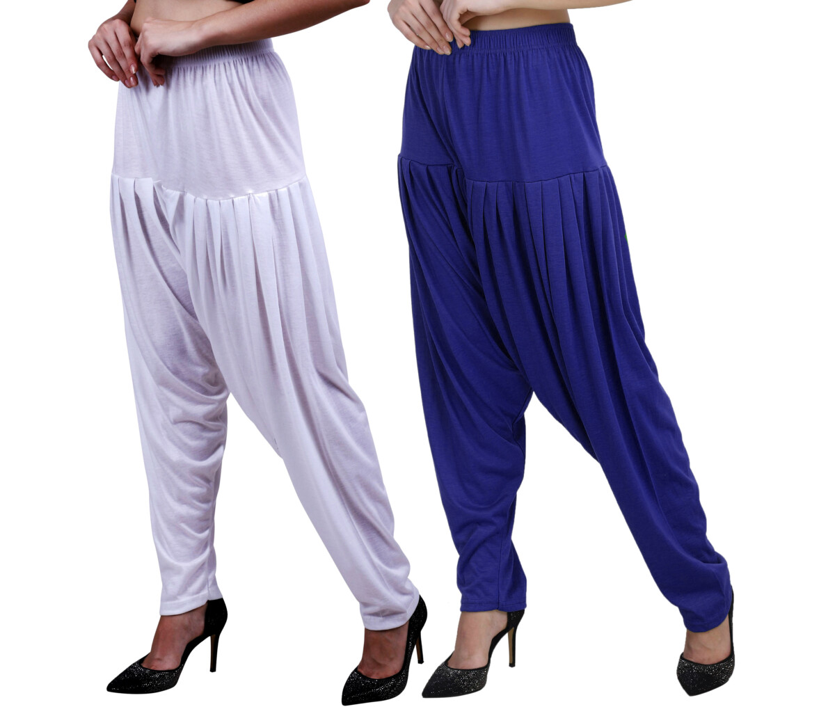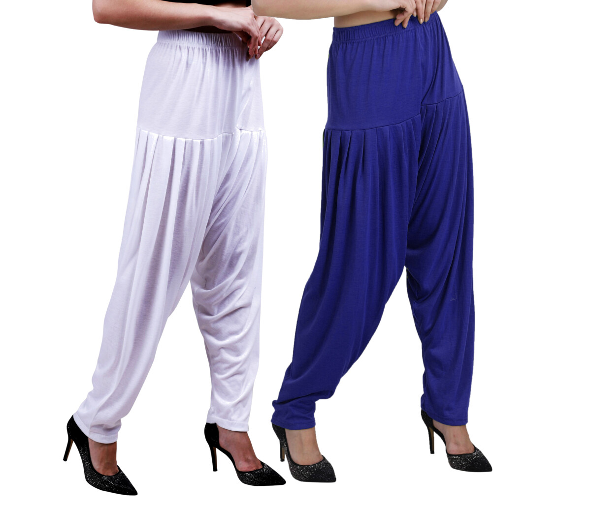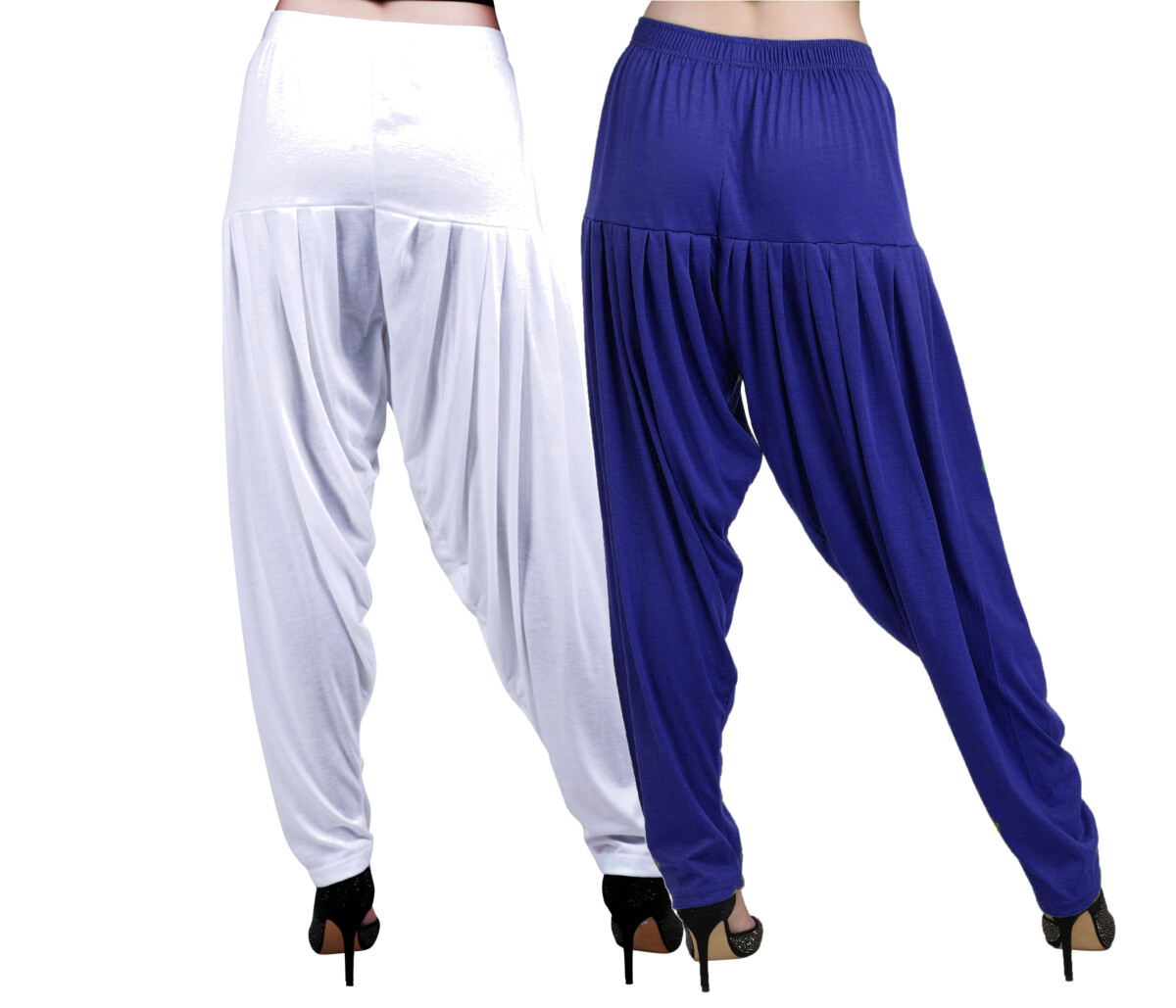 MAGILAM Viscose Solid Patiala Pants Combo 2 (White :: Royal Blue)