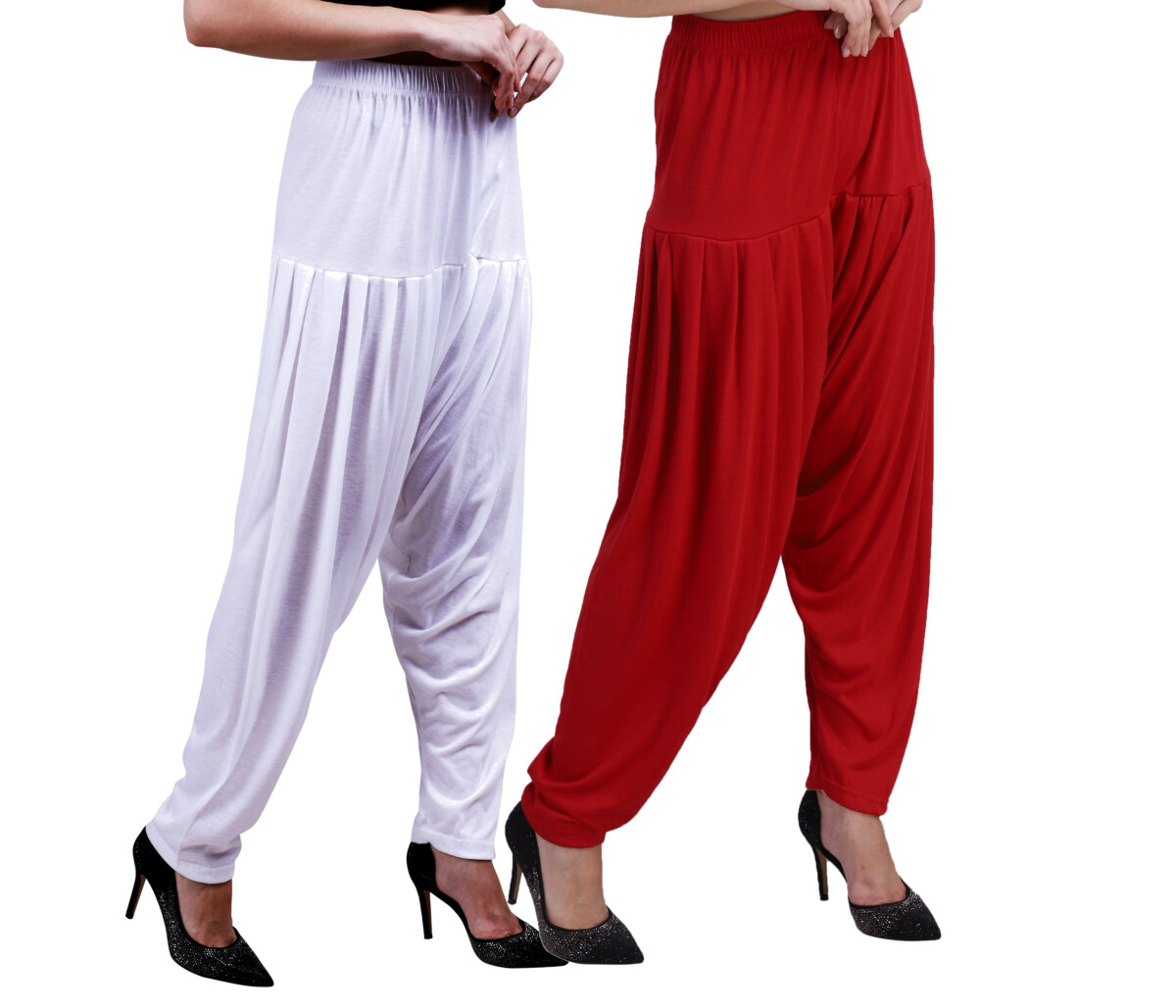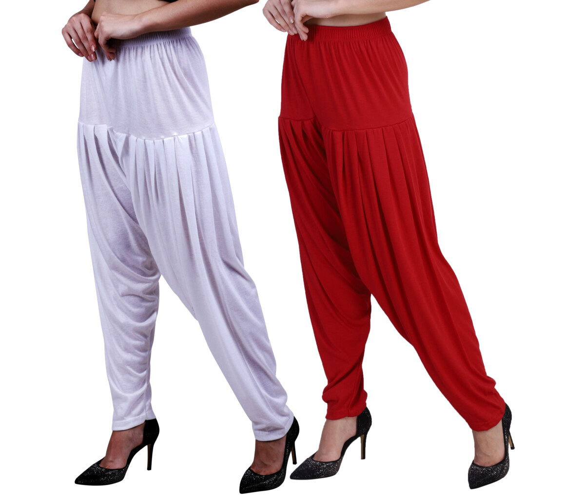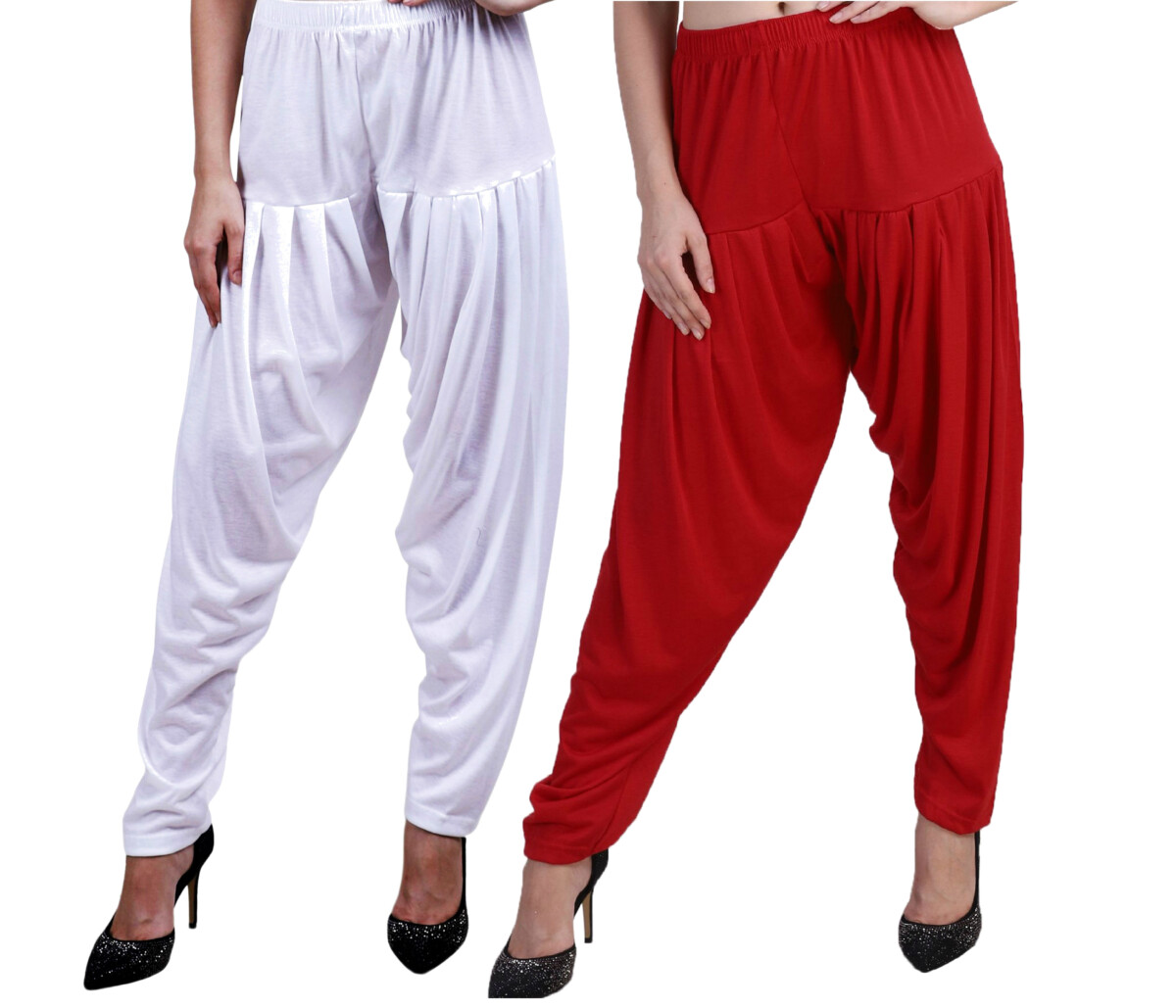 MAGILAM Viscose Solid Patiala Pants Combo 2 (White :: Tomato Red)